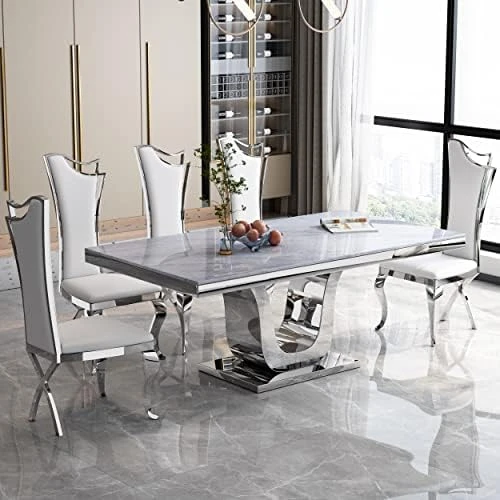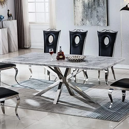 - 【Marble Dining Table For 8】Bring an added touch of glamour to your dining area with this ultra modern designed kitchen dining room table that can easily seat up to 8 people comfortably. Provide with spacious dining space to invite and enjoy breakfast, lunch, dinner and even afternoon teas with family and friends. Elevate your dining experience with this marble dining table.