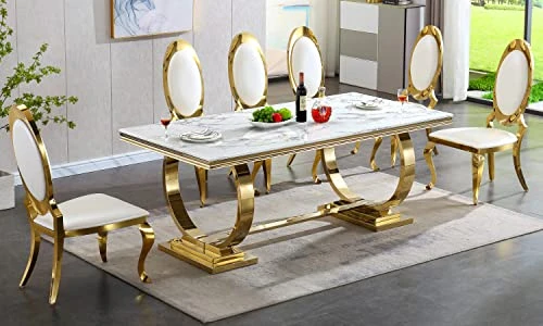 - 【Mid-Century Modern Design】The combination of marble and stainless steel, its design is simple, stylish and elegant, giving you the enjoyment of visual art. Bring a touch of mid-century modern to your space in a classic combination of white and gold marble dining table. Perfect for your dining room, kitchen, living room, conference room, restaurant or hotel.