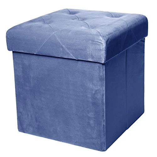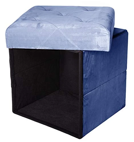 - Upholstered in high quality easy-care faux velvet with a navy colored finish and box stitching on top for a timeless yet classy look — the cover is filled with high rebound sofa sponge to provide a firm yet soft foam padding on top for added sit down comfort, making it ideal for use as a coffee table stool