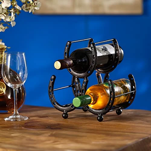 - Inspired by horseshoes, freestanding elegant design holding up to 3 standard bottles of wine