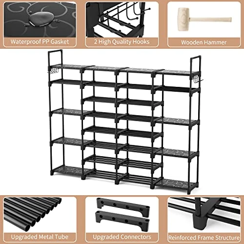 - Sturdy and Durable Shoe Storage – Our large shoe shelf is made of powder-coated metal tubes and strengthened high-quality plastic parts, making it sturdy, durable and capable of heavy duty without shaking and tipping. The metal tubes adopt anti-rust processing technology, which greatly improves its lifespan.