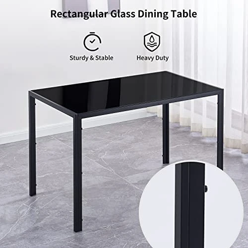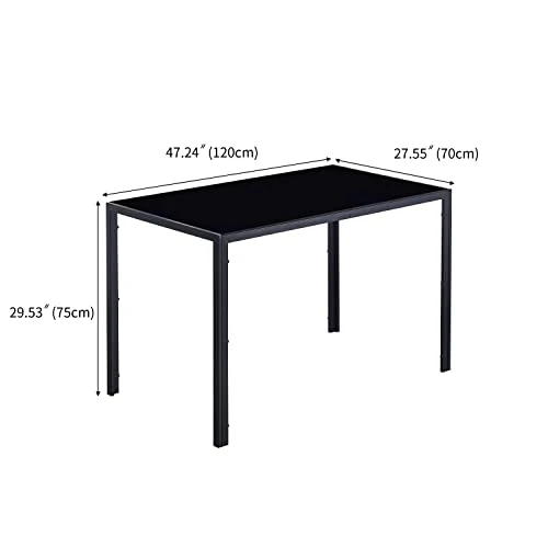 - Rectangular Glass Dining Table Dimensions: this dining table size is L x W x H : 47.24″ * 27.55″ * 29. 53″, the dining table is up to 4 people