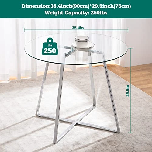 - MODERN ROUND GLASS TABLE: Table can match with any style of living room for 4 use.If you are missing any part or any problem,please contact us, we CAN help you solve the problem,and you do not need return the table.