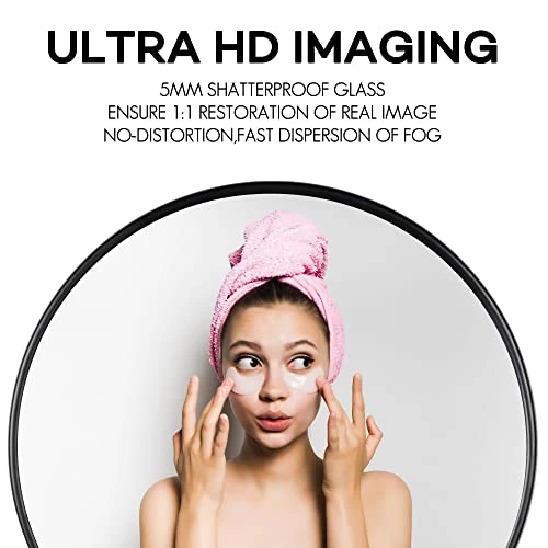 - 30 inch Round Mirror: Featuring 5-layer float technology, our mirror provides a crystal-clear, 1:1 reflection with over 95% high reflectivity. Safe and durable, it comes with an explosion-proof film for added protection.