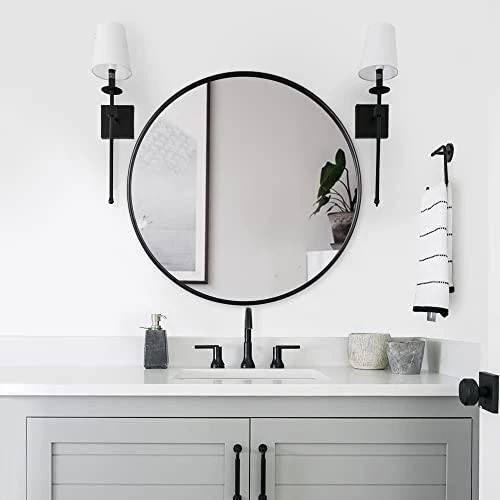 - Versatile Round Vanity Mirror: With its simple and modern design, this adaptable mirror complements any decor and is ideal for various areas, such as the bathroom, living room, bedroom, entryway, office, vanity room, or rustic/farmhouse settings.