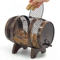 - Sizing: The barrel holds approximately 150 corks and measures 11” tall, 8” diameter, and 9″ Long. Door size: 3.5″ x 4″