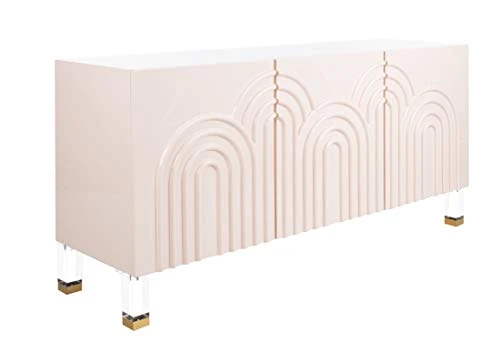 - Made from sturdy metal and MDF wood, this sculptural piece has a bright light pink finish with clear acrylic and gold legs
