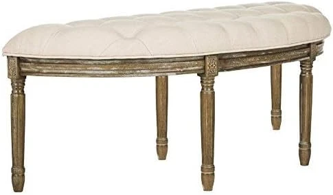 - The rustic oak Finish and Grey upholstery of this Bench will add the perfect accent to your home