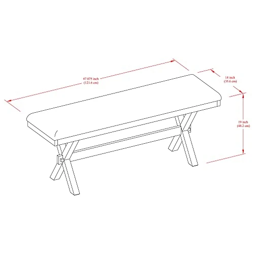 - Dining chair dimensions: 47.87″ W x 14″ D x 19″ H (121.92 cm x 35.56 cm x 48.26 cm)