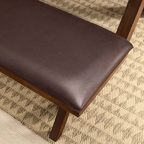 - Cognac finish and rich brown cushion combine to offer a comfortable bench that complements decor styles from modern and elegant to rustic and vintage