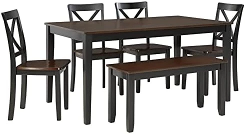 - 6 PIECE SET: Includes table, 4 chairs and a bench. Table measures 36″ W x 60″ D x 30.25″ H, each chair measures 17″ W x 22″ D x 38″ H, and bench measures 38.25″ W x 15.25″ D x 19″ H