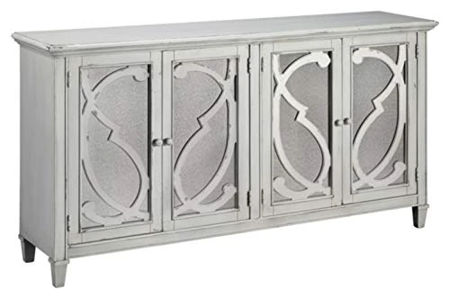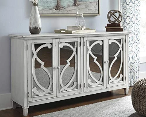 - MIRRORED DETAILS: The shiny mirrored inlays complement the subtly antiqued gray wood finish beautifully, making it the perfect piece for your living room or entryway