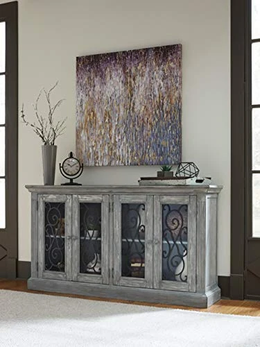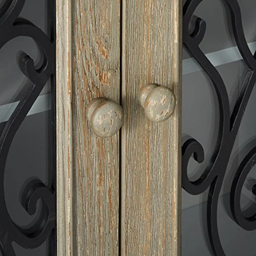 - ORNATE DETAILS: The black ornate scrolled grillwork complements the subtly antiqued gray wood finish beautifully, making it the perfect piece for your living room, bedroom or entryway