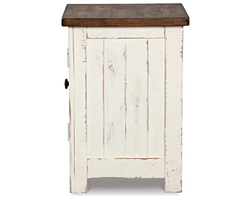 - RUSTIC APPEAL: Between the plank effect styling, visible shelf storage through the metal grills and two-tone finish, this modern table amplifies farmhouse in your home paired with a plant or lamp