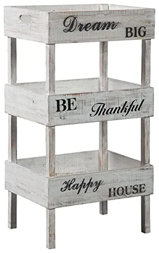 - HANDSOMELY CRAFTED: Shelf is made of wood, and designed with 3 shelves and cutout handles