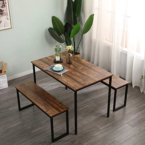 - 【Table/ Bench Dimensions】Dining Table dimensions: 44.9L x28W x29.5H inches, 2 Person Long Benches: 39.4 Lx11.8W x17.7H inches. Accommodate 4 people, ideal for kitchen, dining and living room area.