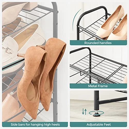 - Support Steadily, Support Reliably: With a robust steel frame and adjustable feet, this shoe rack offers strong and stable support (22 lb load each shelf). Also, the additional bar in the front adds security. Shoes fall down? Fat chance!