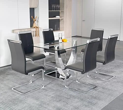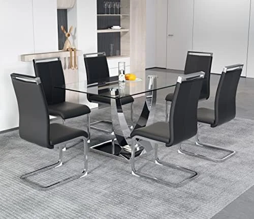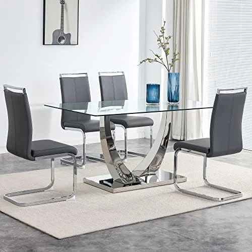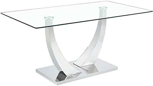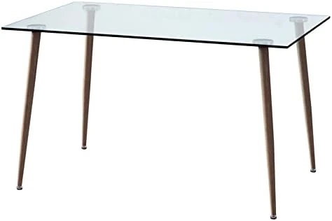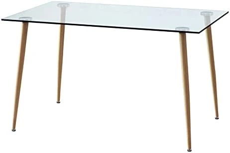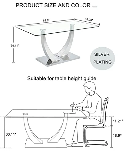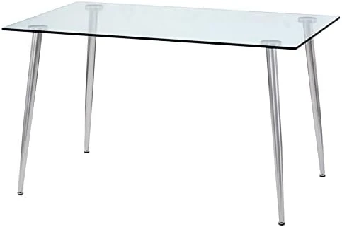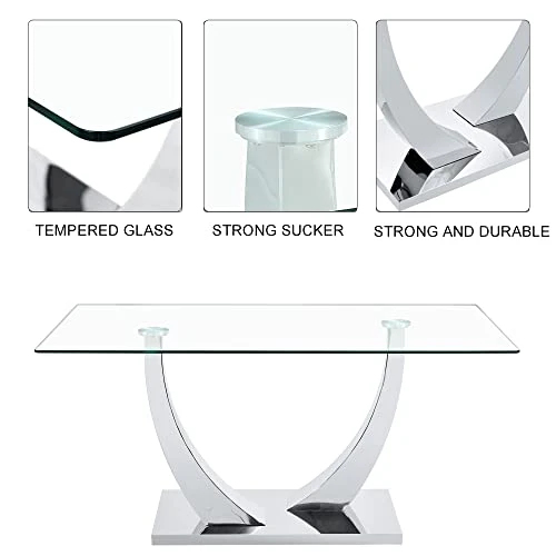 - 【Rectangular Glass Dining Table with Shiny Silver Legs】Large glass tabletop enhances visual attractiveness of this dining table, making it simplistic but elegant. The glass table allows you to study, work and have dinner conveniently.