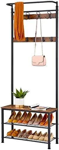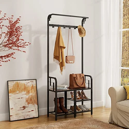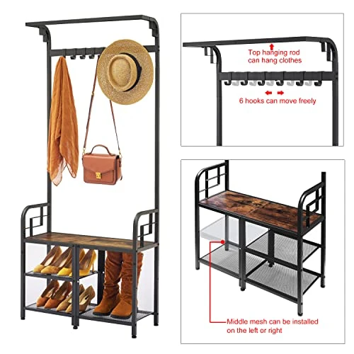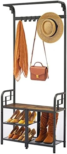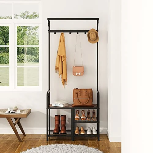 - 【Multifunctional Coat Rack with Shoe Storage】This unique coat rack with bench is suitable for many places in your home, such as entrance, corner and hallway, stylish appearance, rustic design is perfect for your home decoration.