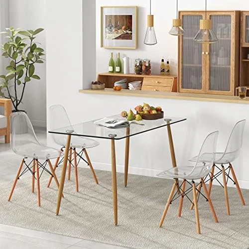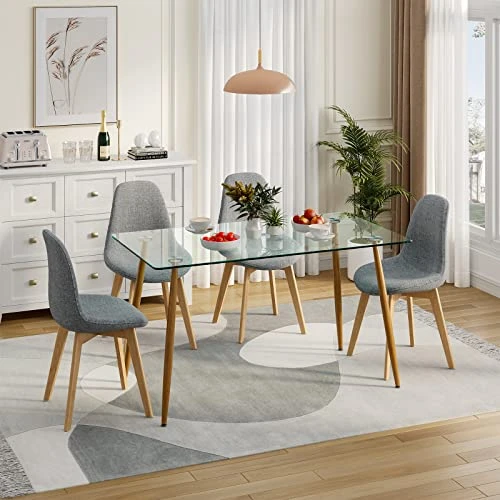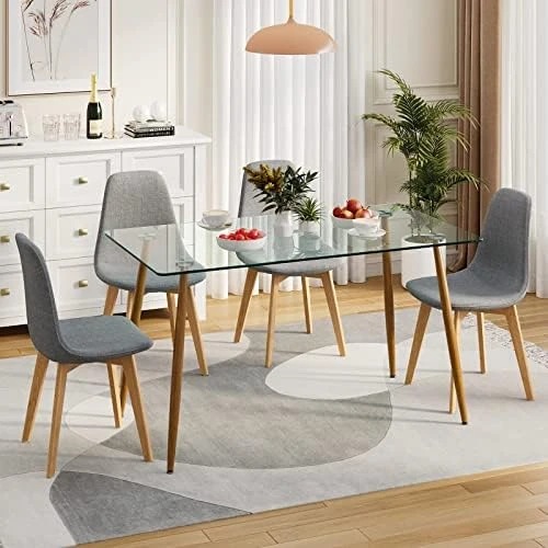- 【Spacious Tempered Glass Tabletop】Large glass tabletop enhances visual attractiveness of this dining table, making it simplistic but elegant. The glass table allows you to study, work and have dinner conveniently. And the smooth beveled edges of 0.3” thickness ensure strong support and prevent accident scratches.