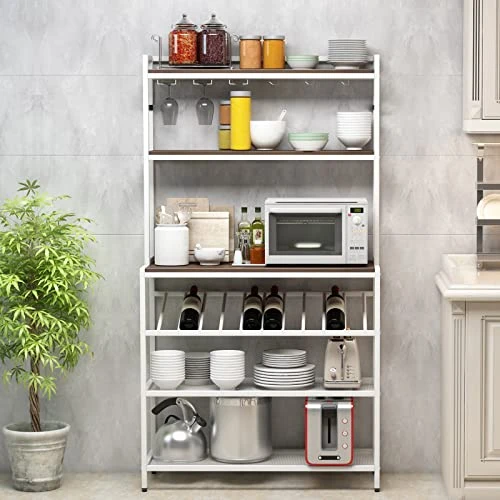 - MULTIFUNCTIONAL ROOM RACK – This kitchen rack can not only be a baker rack or a wine rack table but also be a modern bookcase in living room or an office rack in your study. Image everything is in their position but can also be within reach. Timeless appearance makes the rack suitable for any rustic room.