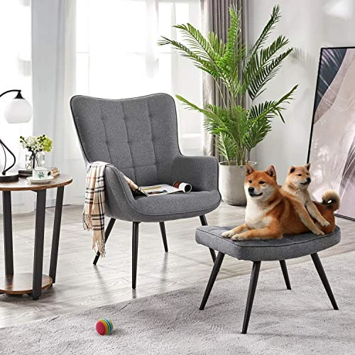 - Durable and Sturdy: This accent chair and ottoman set is constructed from premium and soft linen, solid metal legs and high-density foam. The chair is capable of holding up 135kg/297.6lb and the maximum weight capacity of the ottoman is 89kg/196.2lb