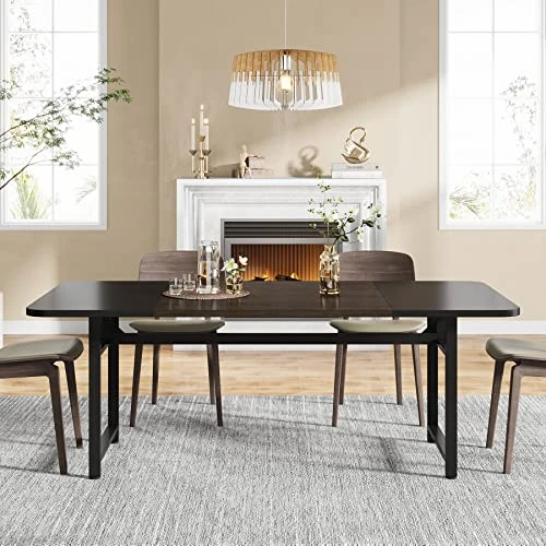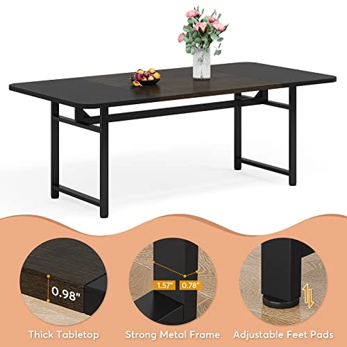 - 【Premium Quality Construction】: Crafted from high grade particle board and solid metal (1.57″ by 0.78″ width), this long dining table will serve you for long lasting use. With 28.74“H, this rustic dining table leaves room for hassle-free arrangement of chairs and comfortable seating for your guests and family members