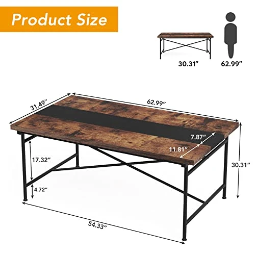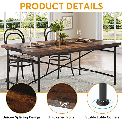 - 【Perfect Size for Multiple Occasions】 The dining table measures 160*80*77 cm/63*31.5*30.3 inches and can comfortably accommodate 4-6 people. The right size not only saves space, but also allows you and your family to enjoy a warm meal time in close proximity. Suitable for Kitchen, Living Room, Dining Room, Small Apartment, Cafe, Restaurant, Sitting Room and so on.