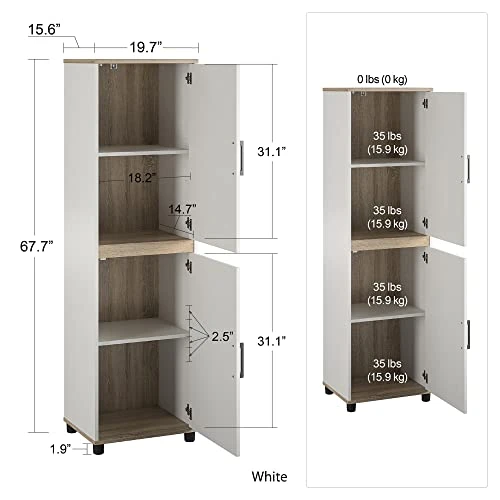 - Assembled product measurement: 19.69″W x 15.55″D x 67.68″H Assembled weight: 75 lbs.
