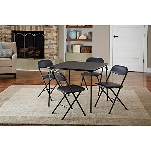 - The sleek black exterior will complement virtually any home decor, and the chairs tuck neatly under the card table for extra room.