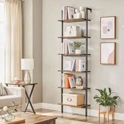 - Where Do the Steps Lead? Warm rustic accents and rigid black steel texture merge together in this 6-tier ladder shelf, leading to a timeless path that’s full of industrial style