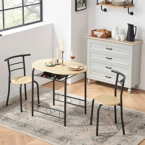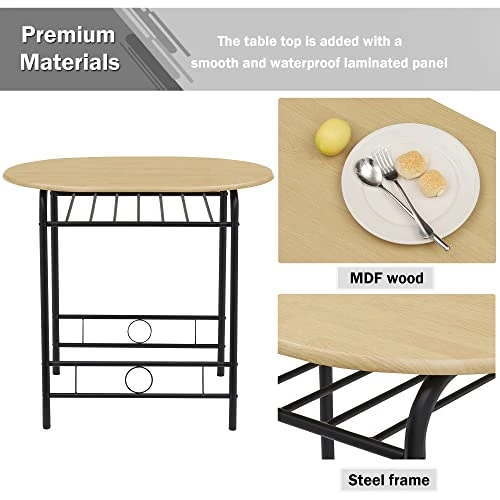 - Versatile Use-This dining table set has a spacious table-top (33.4 x 23.6 inches) and one steel storage shelf, which has enough space for wine bottles, napkins and other essentials. The timeless color scheme and small dimensions make this set perfect for the kitchen, balcony, bedroom, apartment, dorm room, office, temporary activity & party, etc.