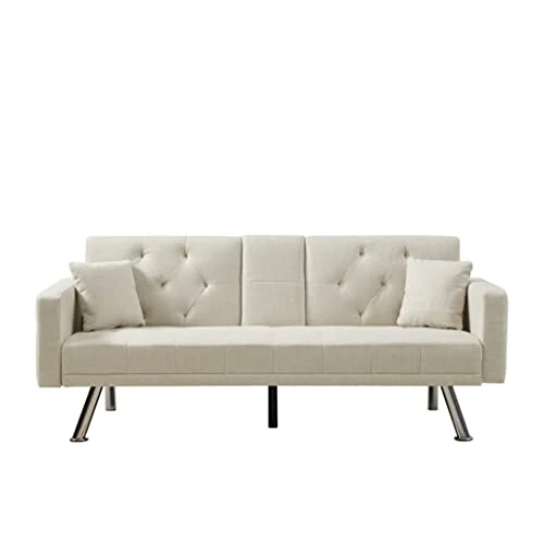 - :Loveseat Convertible Daybed with 2 Cupholder:Verfur fabric sleeper sofa provide customers with the best user experience. The soft backrest locks into place to provide the right support for your back and waist. As for the upholstered seats, it doesn’t feel hard to sit on. A cup holder can give you space for a drink or wine.