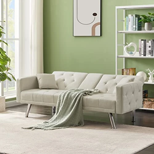 - :Easily Converted into A Bed:Verfur futon sofa couch can be converted into a small bed easily, and each backrest can be adjusted in 3 angles separately. This convertible design can make the utmost of your space without taking up too much space.