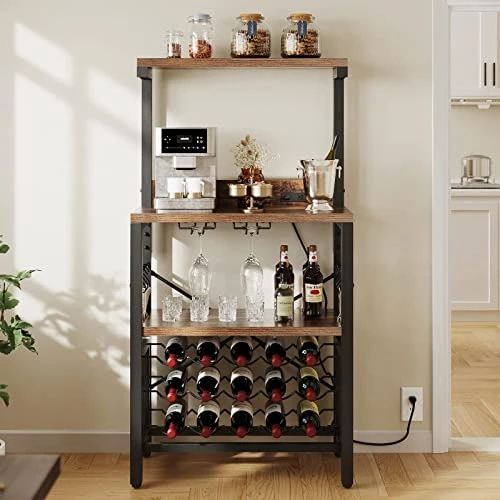 - 【High Quality & Stable Structure】Crafted from well-selected metal frame and P2 particleboard, the main tabletop of this wine bar rack offers a stable and sustainable surface for your drinks and kitchen appliances. The X-shaped design and anti-tip kits improve the overall stability, offering it a large weight capacity.